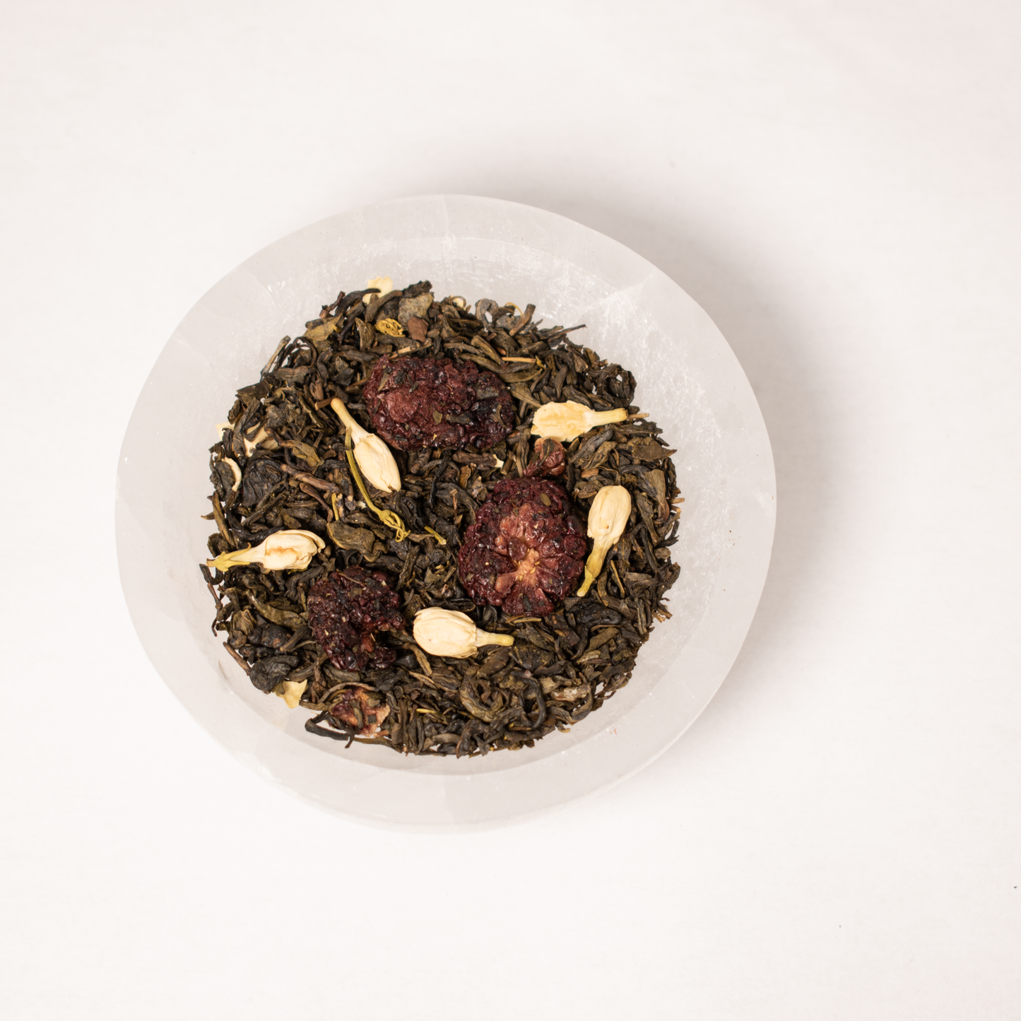 Young Hyson Green Tea, All Natural Flavor, Freeze-Dried Blackberry Pieces, Jasmine Flowers, N/A Flavor.