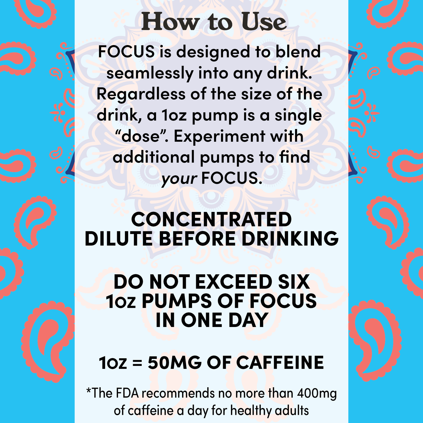 DO NOT EXCEED SIX 1oz PUMPS OF FOCUS IN ONE DAY